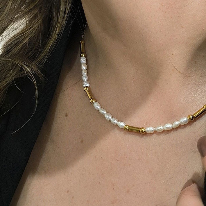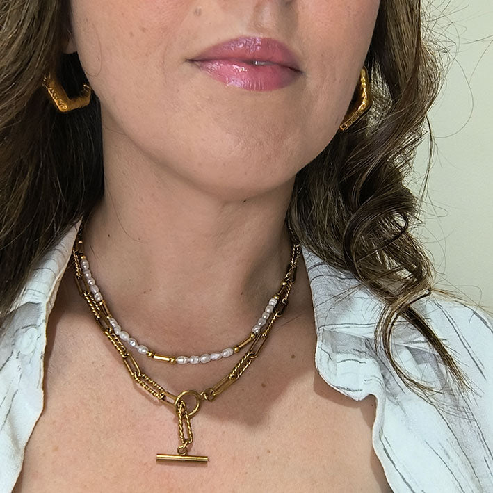O Power Gleam une o minimalismo moderno ao detalhe sofisticado. Com o contraste entre corrente e pérolas, é uma peça versátil que combina casual chic com elegância refinada.